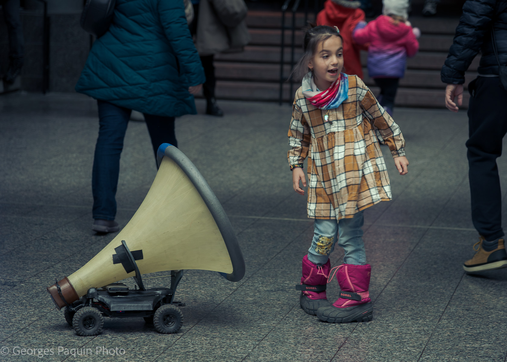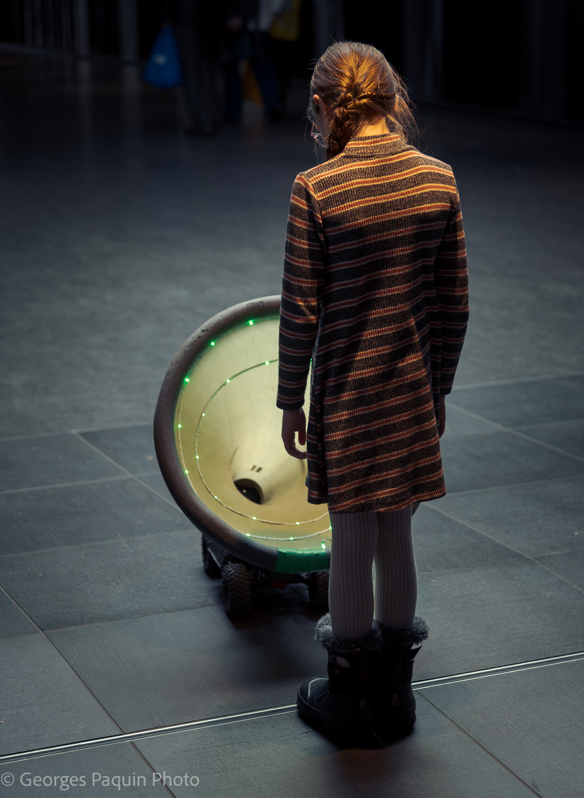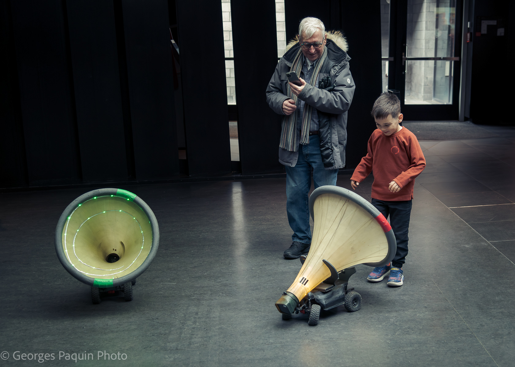 Children interacting with robots. This is a creation of the artistic company CREW. https://www.crew.brussels/fr